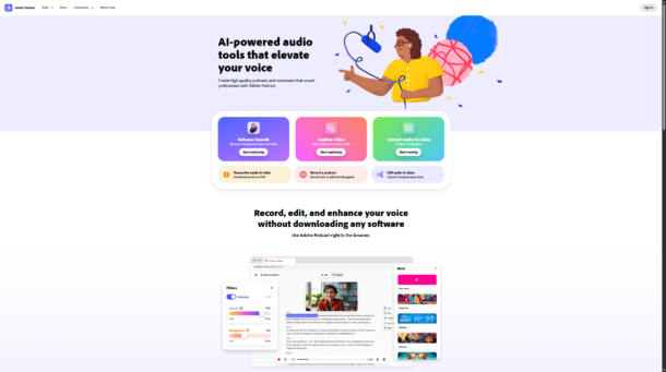Adobe Podcast’s Enhance Speech feature is genuinely impressive. Upload audio captured on a phone or in a noisy environment, and it outputs something that sounds like it came from a treated studio. The tool runs entirely in your browser.