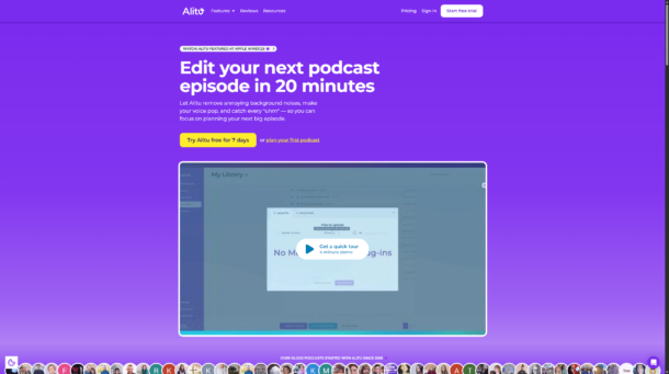 Alitu markets itself with a bold claim: edit your next podcast episode in 20 minutes. The platform automates nearly everything, with noise reduction, volume level, and add of intros/outros, all with minimal user input.