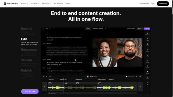 Riverside built its reputation on one killer feature: local capture. When you record a remote interview, the audio and video are captured on each participant’s device at full quality, then uploaded afterward. Internet hiccups don’t destroy your file, so you get studio-quality audio regardless of connection stability.