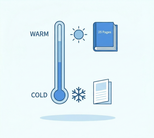 Warm audiences, meaning people who have engaged with your blog, watched a video, or been on your email list, are in a different position. They have already invested time in your ideas and are willing to invest more. A 15-to-30-page ebook with a real framework, original case studies, and substantive analysis is appropriate at this stage, and in some categories, a shorter asset can actually feel insufficiently rigorous for an audience that expects depth.