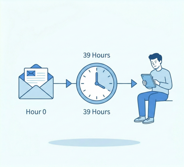A follow-up nurture sequence is essential — dead silence after delivery forfeits the conversion opportunity the opt-in was designed to create. Crucially, NetLine’s 2025 research found that the average B2B ebook is consumed approximately 39 hours after download, so a sequence that pitches the next step within 24 hours is reaching the reader before they have received the value you promised. Companies with systematic follow-up sequences achieve 25 to 35% above-benchmark conversion rates compared to those that deliver the ebook and send no further communication.
